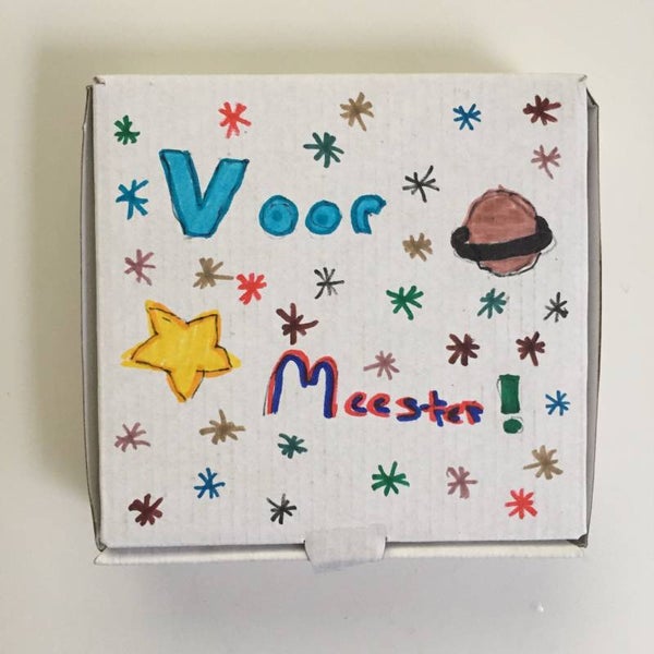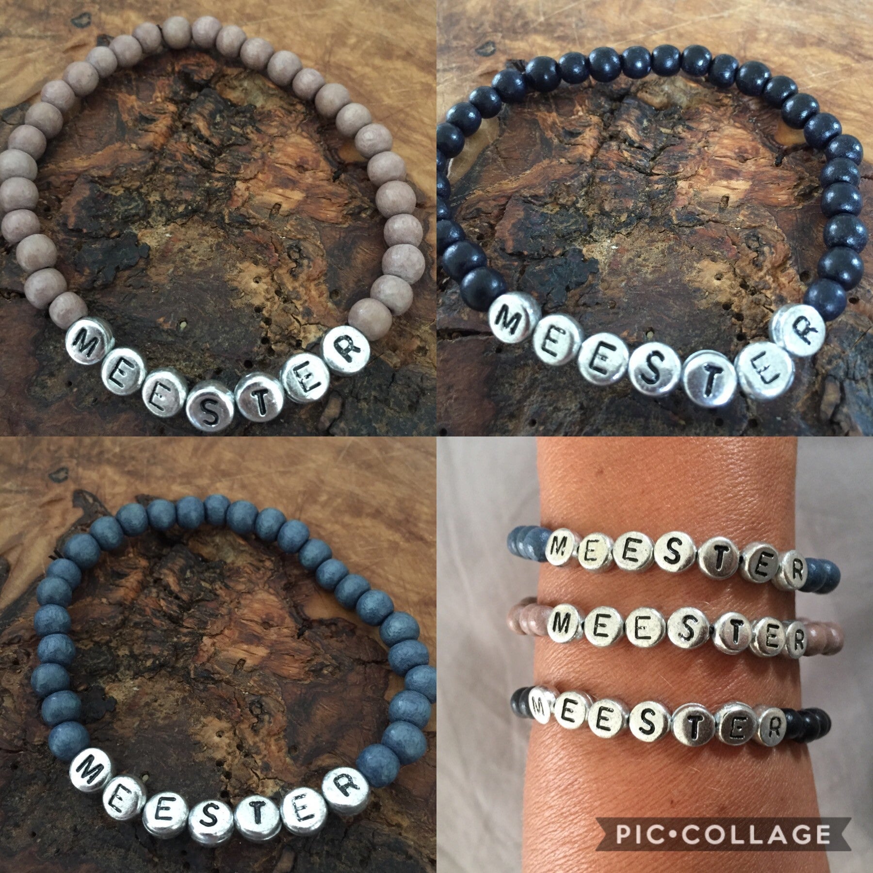 DIY pakketje voor een armband voor de meester! Rijg de kralen met en maak de armband. Vouw het bijgeleverde doosje in elkaar (vouwblad) en versier het tot een feestelijk doosje. Schrijf de kaart erbij en je hebt een origineel cadeau voor die leuke, lieve of grappige meester!