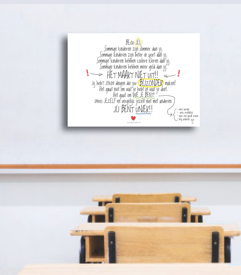 Een mooi doek met daarop de tekst waarop kinderen lezen dat zij uniek zijn en zich niet met anderen hoeven te vergelijken!